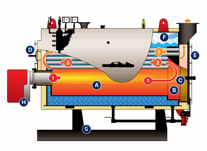Type: Firetube, Horizontal, Packaged boiler, Scotch Marine